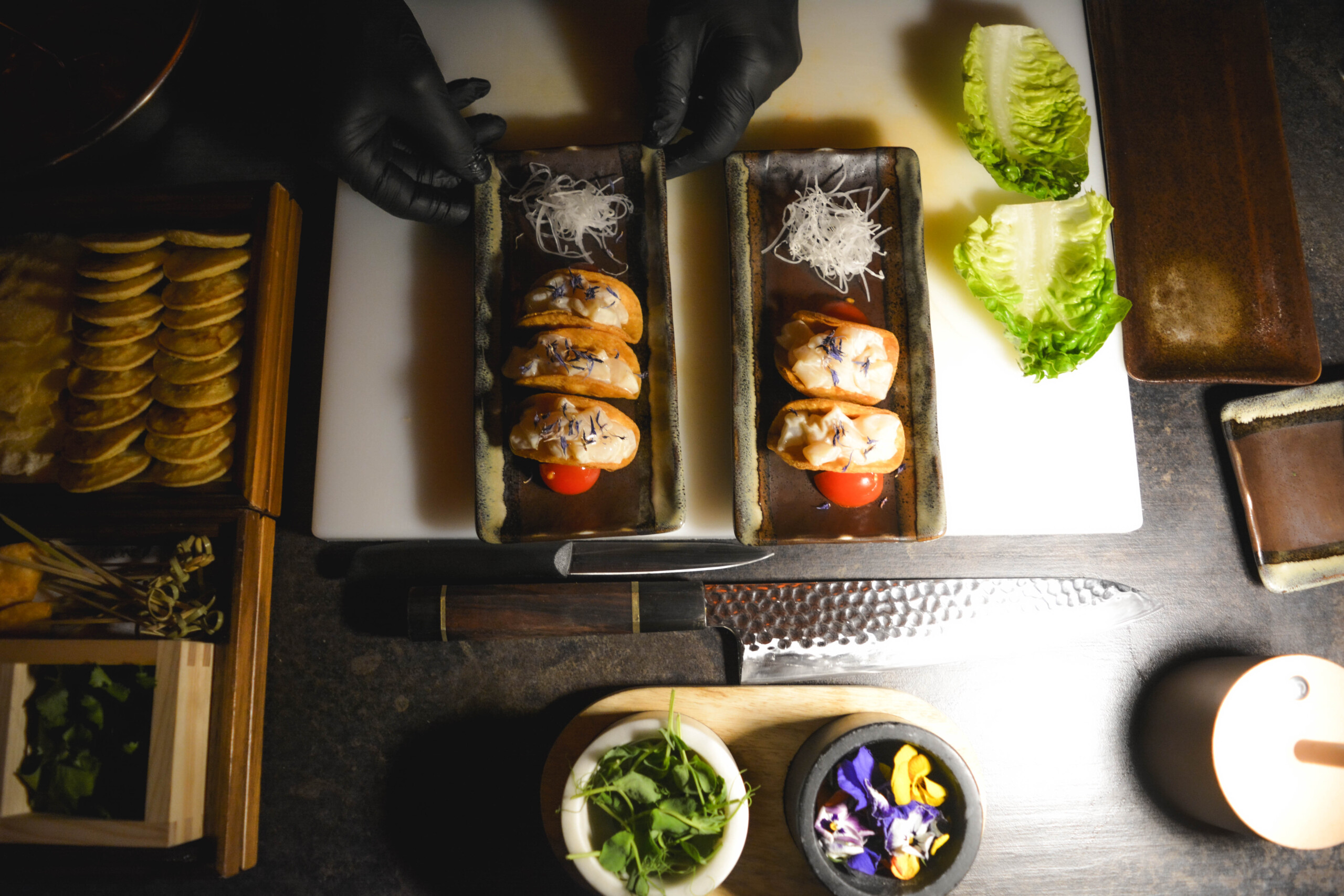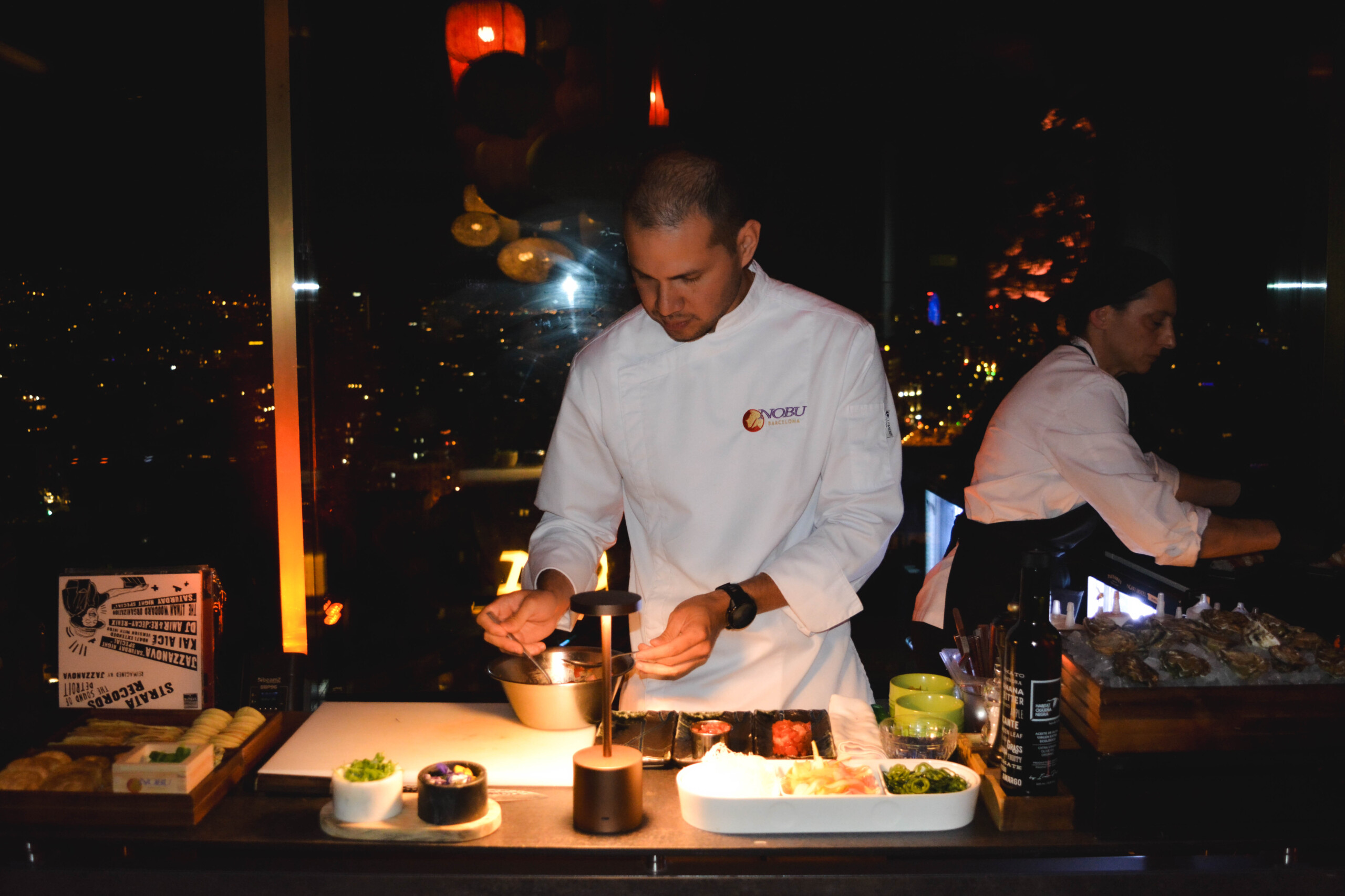 Gastronomia en viu: Un xef de Nobu elabora en directe propostes de cuina freda d’estil raw bar. Entre els plats destaquen el Suzuki Ceviche o el Wagyu Yukke, culminant amb dolços tradicionals com el Tezukuri Mochi.