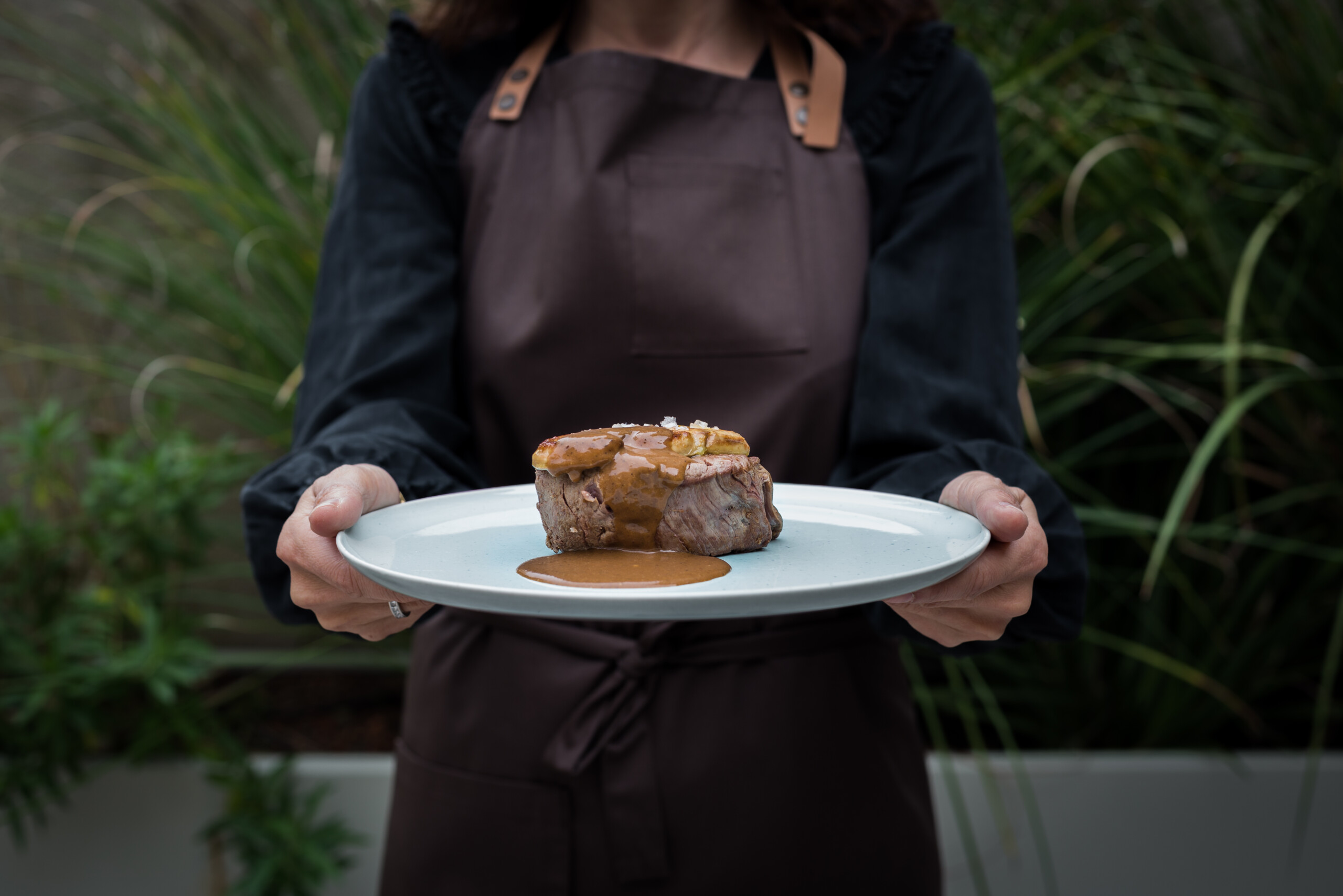 El solomillo Frisian és el protagonista del plat principal, acompanyat de Gratin dauphinois, bimis saltejats, fulla de roure amb vinagreta francesa, pil pil de pebrots i patates fregides, tot realçat amb salses artesanes com la clàssica Café de París i la intensa salsa de pebre.