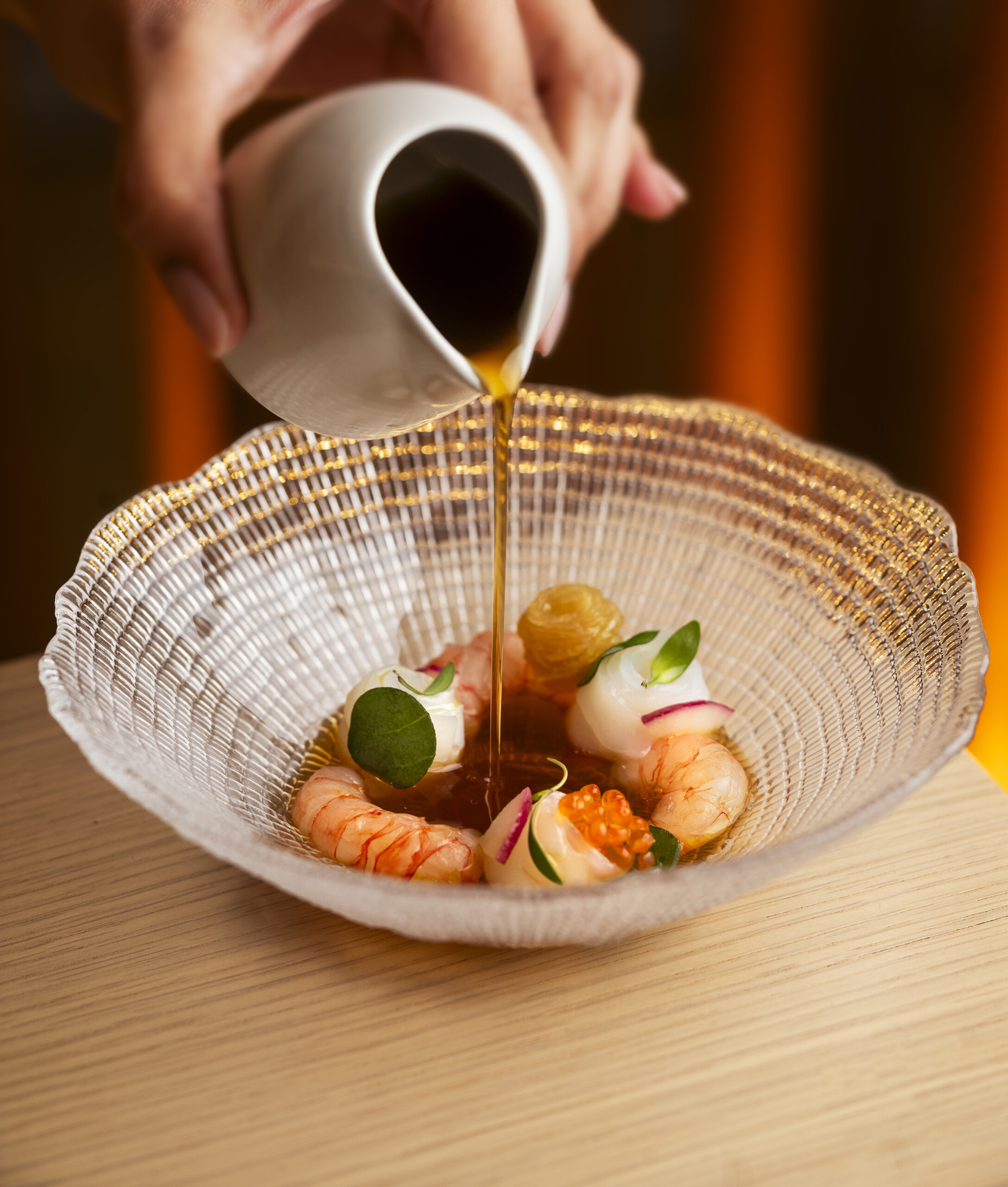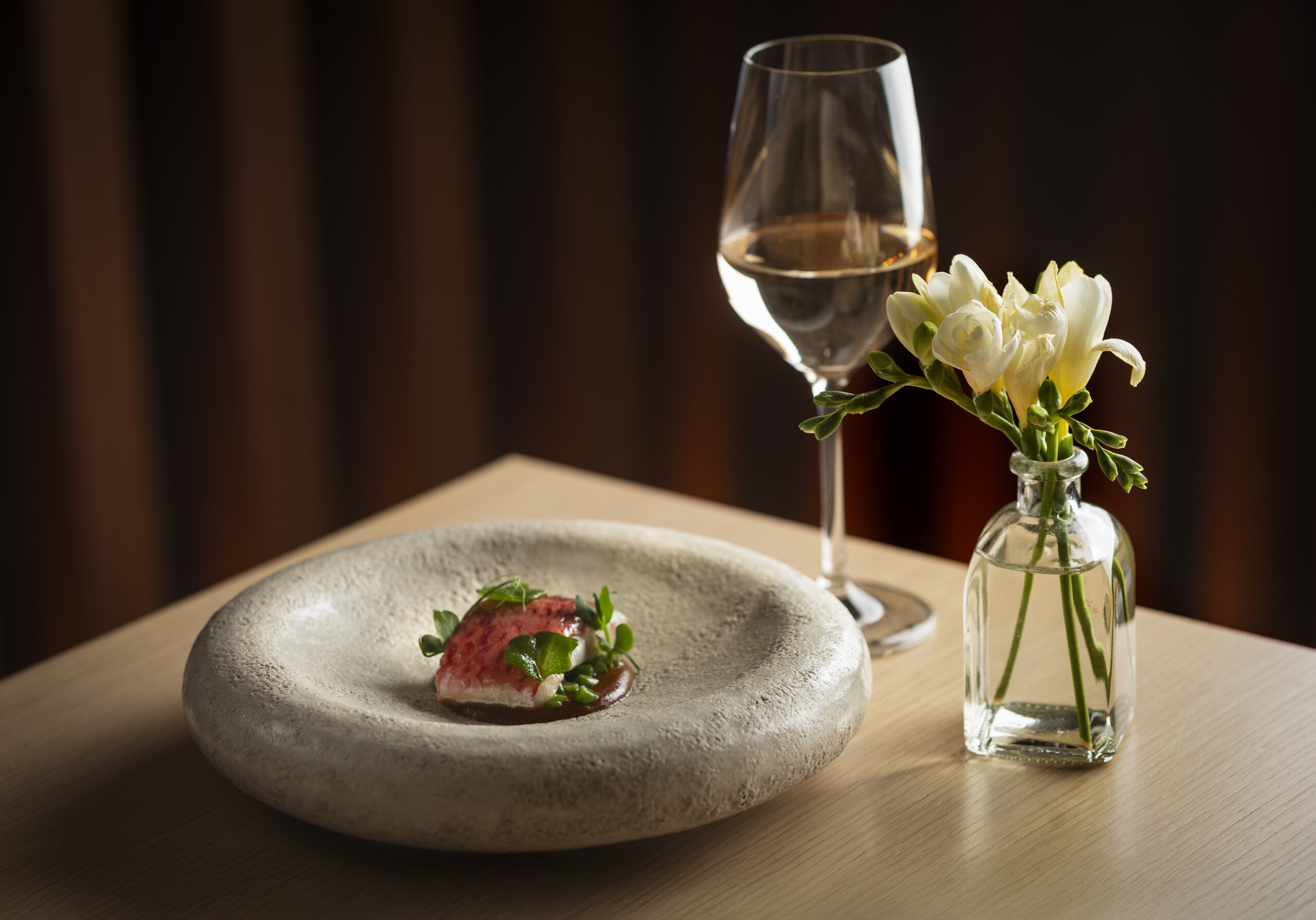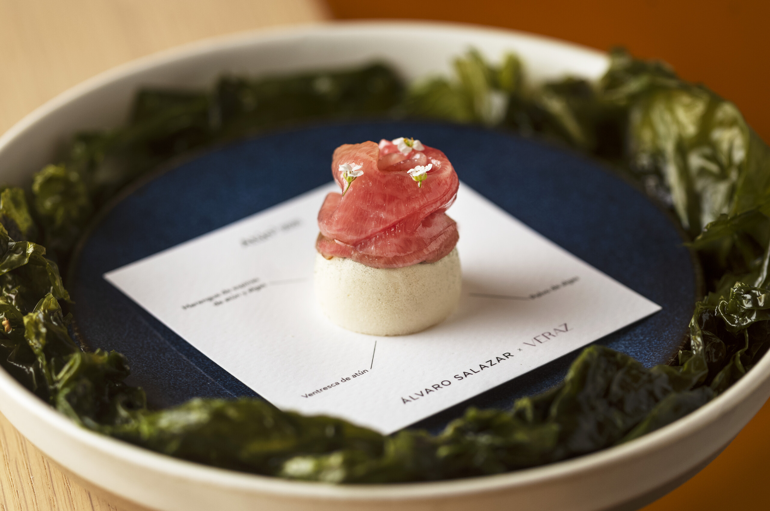 L’art culinari del xef Álvaro Salazar cobra vida en un cuidat menú degustació de cinc temps profundament arrelat en la rica gastronomia espanyola, amb un enfocament contemporani de la cuina mediterrània i andalusa. Es tracta d’un itinerari viu i en constant evolució, subjecte a petits canvis segons el producte i el moment, que convida el comensal a travessar diferents etapes creatives de l’Álvaro: