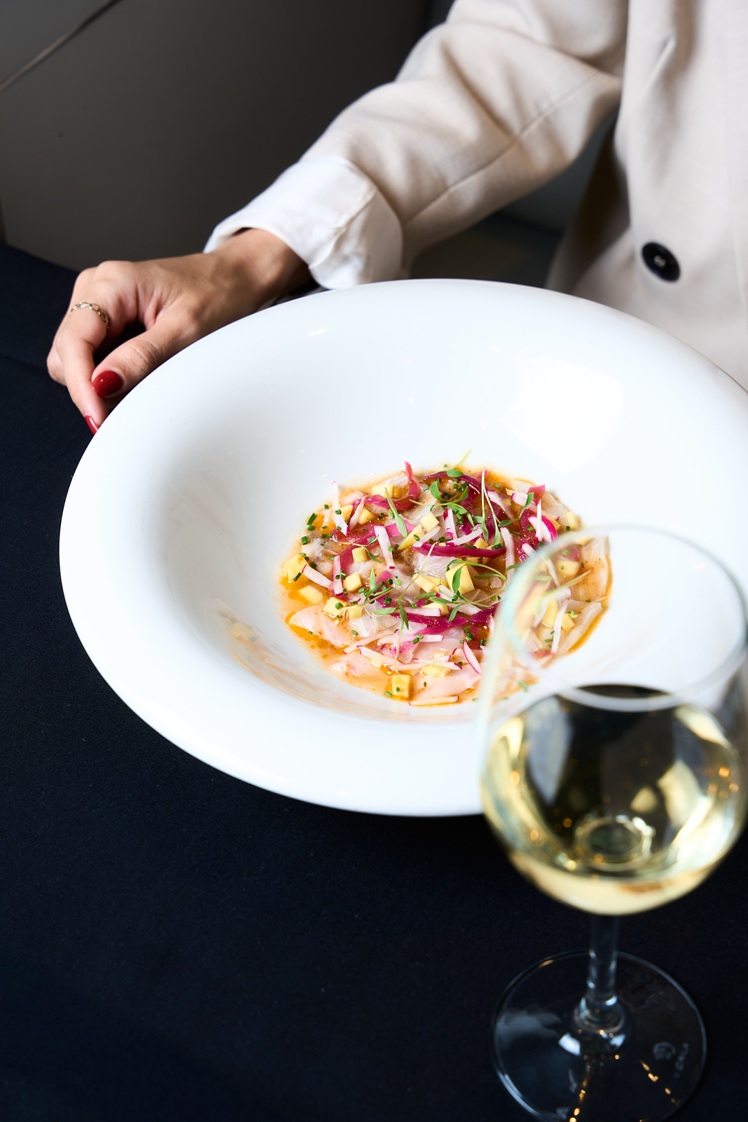 En aquesta carta brillen plats com el fricandó melós de vedella amb bolets, un clàssic imprescindible que evoca la cuina de sempre. L’apartat dels entrants sorprèn amb propostes elaborades com l’ou a 65º amb parmentier de patata i pop, una mostra perfecta de textura i sabor, o la flor de carxofa confitada amb rovell trufat. Pel que fa als principals, el mar i muntanya de pollastre de corral farcit i gambes reflecteix l’essència de la gastronomia local amb un toc sofisticat, mentre que el punt final el posa un pastís cremós de formatge manxec, entre d’altres opcions.