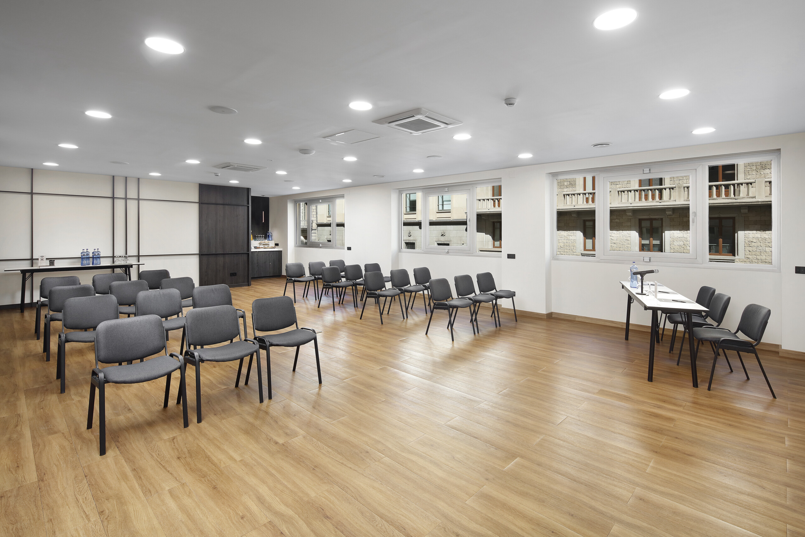 A la primera planta, amb llum natural, la Sala Laietana de 65 m² ofereix vistes a Via Laietana i és ideal per a reunions i banquets de fins a 50 persones. La Sala St. Jaume de 81 m², amb accés directe a la terrassa, és perfecta per a celebracions més íntimes, amb capacitat per a 50 persones en banquet o 40 en còctel.