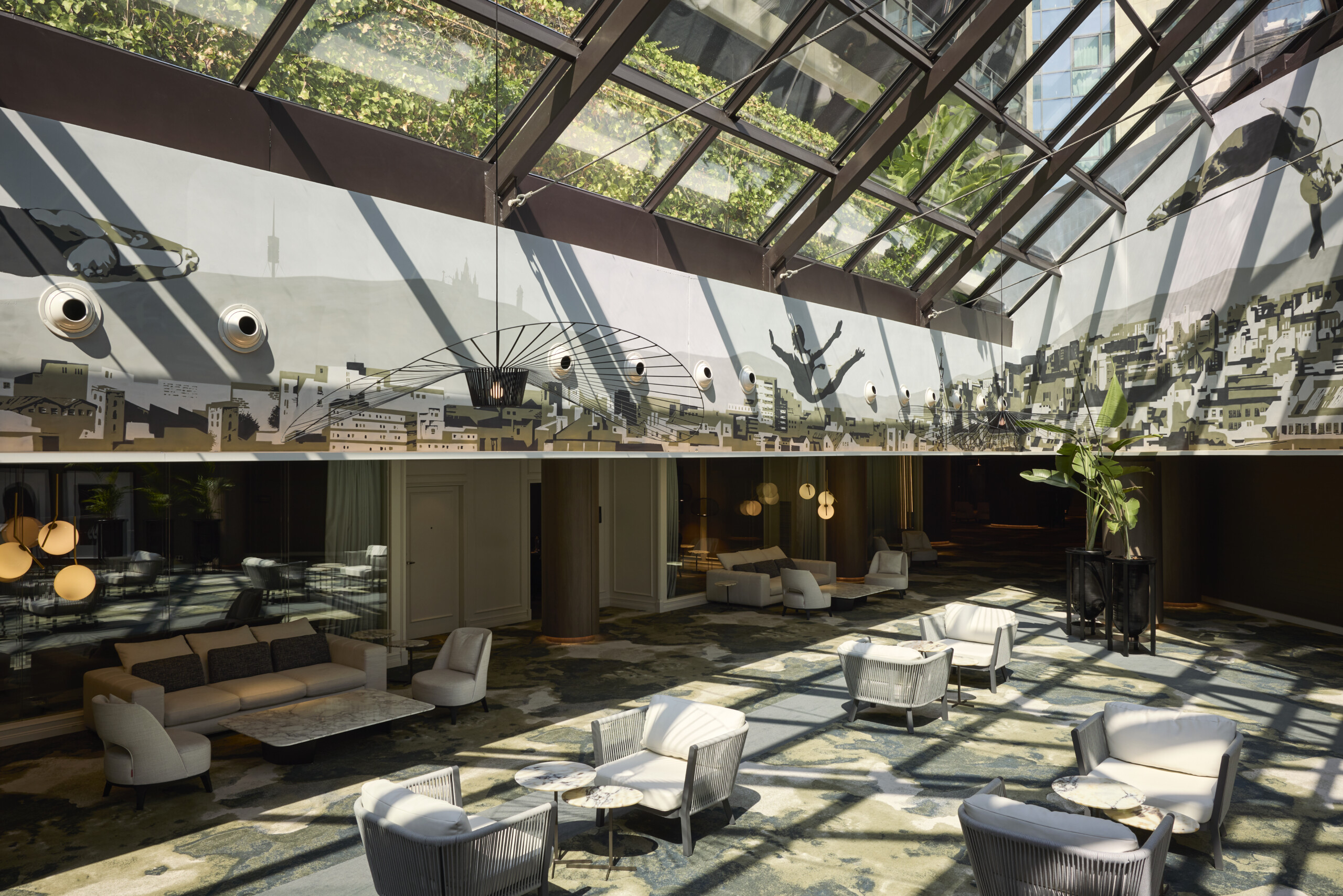 L’hotel disposa d’un total de 9 sales de reunió que van dels 800m2 als 30 m² amb la possibilitat de realitzar una àmplia varietat de muntatges, incloent-hi l’accés de vehicles per a la seva exposició. L’Atrium, un espai multidisciplinari cobert per una piràmide de vidre de 9 metres d’altura i envoltat per un mural de Barcelona pintat pel Street Artist Albert Mir, actua com a distribuïdor de sales i resulta l’espai perfecte per a realitzar qualsevol tipus de *coffee *break, còctel o exposició de producte.