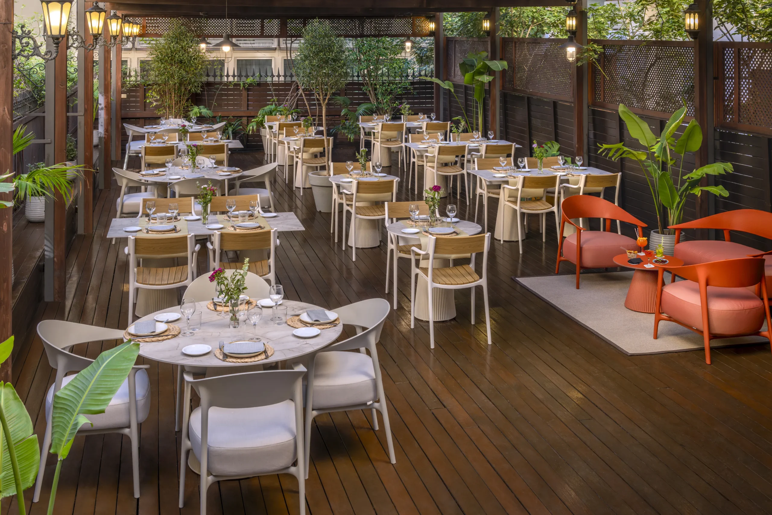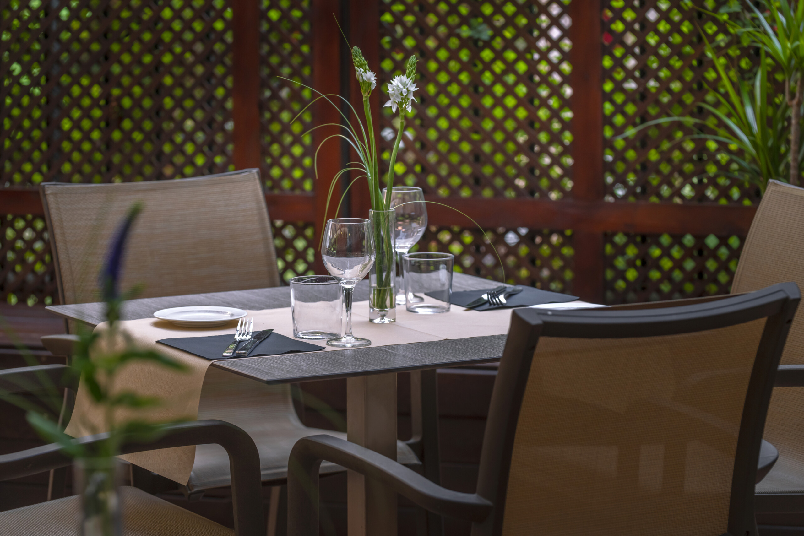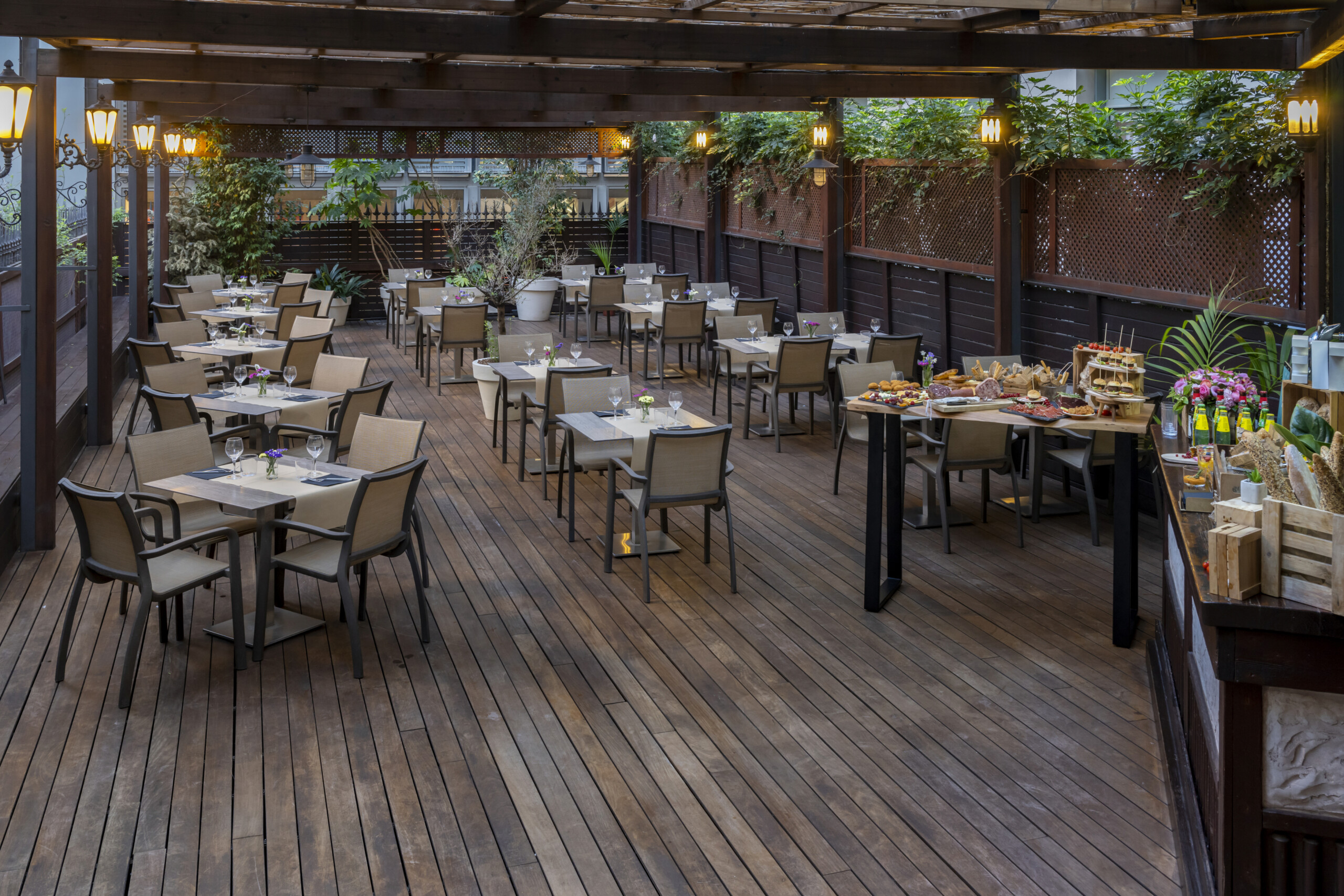 Quan arriba el bon temps, el 128 Rambla Restaurant del Serhs Rivoli Rambla es trasllada a la seva terrassa interior, un espai envoltat de verd i amb vistes als jardins de l’Ateneu Barcelonès. Un petit oasi al centre de Barcelona on el bullici de La Rambla dona pas a la calma i al gust per les coses ben fetes.